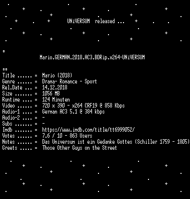 | FiLENAME: | Mario.GERMAN.2018.AC3.BDRip.x264-UNiVERSUM.mkv |
