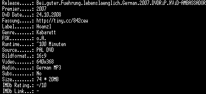 | FiLENAME: | Bei.guter.Fuehrung.lebenslaenglich.German.2007.DVDRiP.XViD-AMBASSADOR.avi |