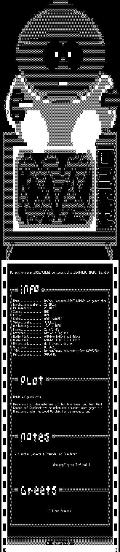 | FiLENAME: | BoJack.Horseman.S06E03.Wohlfuehlgeschichte.GERMAN.DL.1080p.WEB.x264-TSCC.mkv |