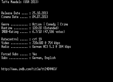 | FiLENAME: | Taffe.Maedels.EXTENDED.German.BDRiP.x264-EXQUiSiTE.mkv |