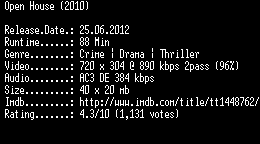 | FiLENAME: | Open.House.German.2010.AC3D.BDRip.XviD-LC.avi |