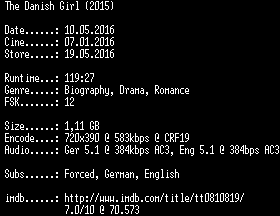 | FiLENAME: | The.Danish.Girl.German.2015.DL.BDRiP.x264-CiNEViSiON.mkv |