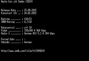 | FiLENAME: | Heute.bin.ich.Samba.German.2014.AC3.BDRiP.x264-EXQUiSiTE.mkv |