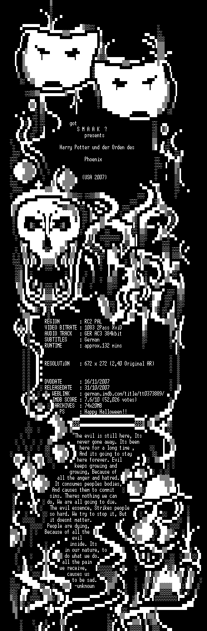 | FiLENAME: | Harry.Potter.und.der.Orden.des.Phoenix.GERMAN.AC3.DVDRiP.XviD-SMAAK.CD2.avi |