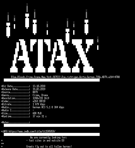 | FiLENAME: | Blue.Bloods.Crime.Scene.New.York.S07E22.Die.richtigen.Worte.German.720p.HDTV.x264-ATAX.mkv |