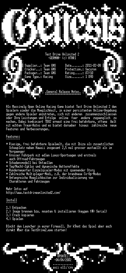 | FiLENAME: | Test.Drive.Unlimited.2.GERMAN-GENESIS.iso |