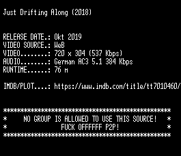 | FiLENAME: | Just.Drifting.Along.2018.German.WebRip.x264-SLG.mkv |