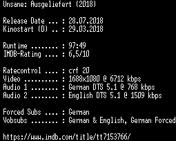 | FiLENAME: | Unsane.Ausgeliefert.2018.German.DTS.DL.1080p.BluRay.x264-COiNCiDENCE.mkv |