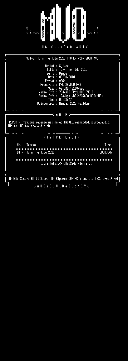 | FiLENAME: | Sylver-Turn_The_Tide_2010-PROPER-x264-2010-MVO.mkv |