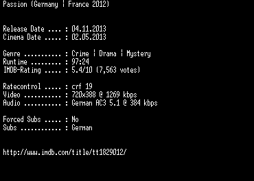 | FiLENAME: | Passion.German.BDRiP.x264-EXQUiSiTE.mkv |