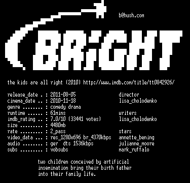 | FiLENAME: | The.Kids.Are.All.Right.German.720p.BluRay.x264-BRiGHT.mkv |