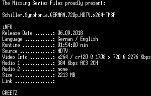 | FiLENAME: | Schiller.Symphonia.GERMAN.720p.HDTV.x264-TMSF.mkv |