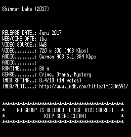 | FiLENAME: | Shimmer.Lake.2017.German.WebRip.x264-SLG.mkv |