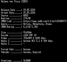 | FiLENAME: | Helena.von.Troja.German.REMASTERED.2001.AC3.BDRip.x264-SPiCY.mkv |