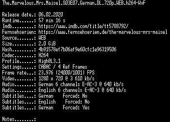 | FiLENAME: | The.Marvelous.Mrs.Maisel.S03E07.German.DL.720p.WEB.h264-WvF.mkv |