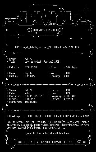 | FiLENAME: | MOP-Live_at_Splash_Festival_2008-DVDRiP-x264-2010-GRMV.mkv |