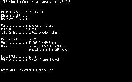 | FiLENAME: | jOBS.Die.Erfolgsstory.von.Steve.Jobs.2013.German.DL.1080p.BluRay.x264-EXQUiSiTE.mkv |