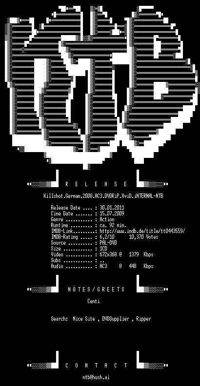 | FiLENAME: | Killshot.German.2008.AC3.DVDRiP.XviD.iNTERNAL-NTB.avi |
