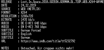 | FiLENAME: | Lost.In.Space.2018.S02E06.GERMAN.DL.720P.WEB.X264-WAYNE.mkv |