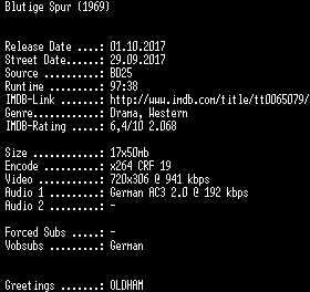 | FiLENAME: | Blutige.Spur.German.REMASTERED.1969.AC3.BDRip.x264-SPiCY.mkv |