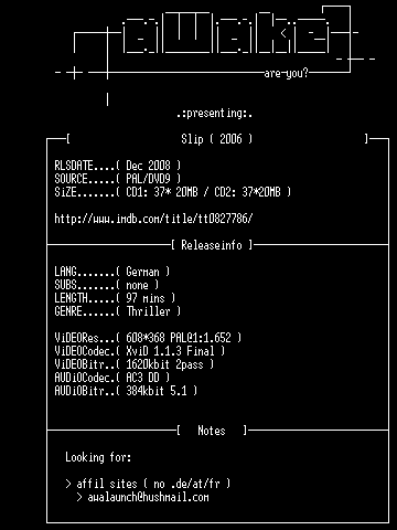 | FiLENAME: | Slip (2006) [GER WS DVD] CD2.avi |