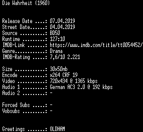 | FiLENAME: | Die.Wahrheit.German.1960.AC3.BDRiP.x264-SPiCY.mkv |