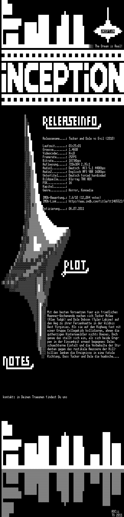 | FiLENAME: | Tucker.and.Dale.vs.Evil.2010.German.AC3.DL.BDRip.XviD-iNCEPTiON.avi |