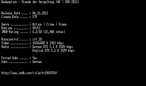 | FiLENAME: | Redemption.Stunde.der.Vergeltung.2013.German.DL.1080p.BluRay.x264-EXQUiSiTE.mkv |
