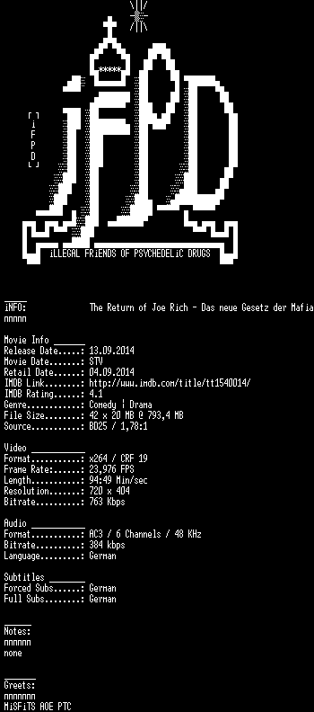 | FiLENAME: | The.Return.of.Joe.Rich.Das.neue.Gesetz.der.Mafia.German.2011.AC3.BDRiP.x264-iFPD.mkv |