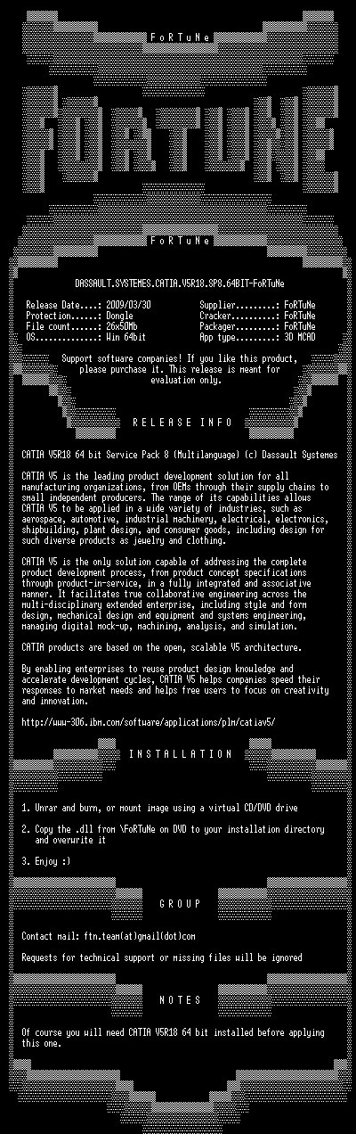 | FiLENAME: | Dassault Systemes CATIA V5 R18 SP8 64BiT-FoRTuNe.iso |