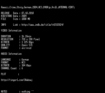 | FiLENAME: | Hawaii-Crime-Story.German-2004.AC3.DVDRip.XviD.iNTERNAL-CENTi.avi |