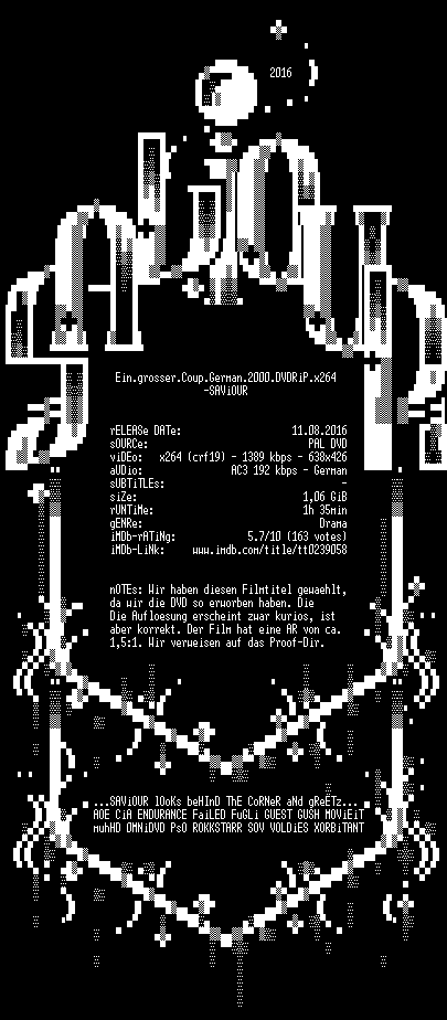 | FiLENAME: | Ein.grosser.Coup.German.2000.DVDRiP.x264-SAViOUR.mkv |