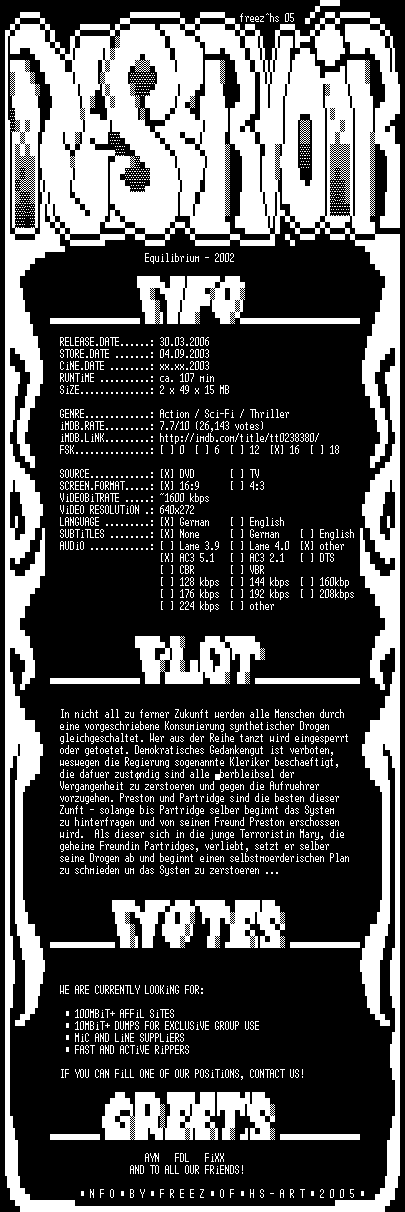 | FiLENAME: | Equilibrium.German.2002.AC3.DVDRiP.XviD.iNTERNAL-RESERVOiR.CD2.avi |