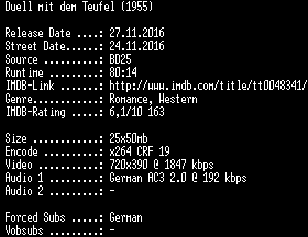 | FiLENAME: | Duell.mit.dem.Teufel.German.1955.AC3.BDRip.x264-SPiCY.mkv |