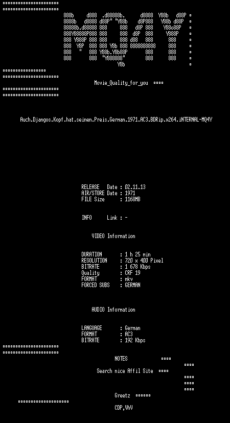 | FiLENAME: | Auch.Djangos.Kopf.hat.seinen.Preis.German.1971.AC3.BDRip.x264.iNTERNAL-MQ4Y.mkv |