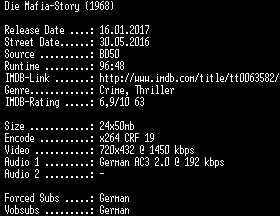 | FiLENAME: | Die.Mafia.Story.German.REMASTERED.1988.AC3.BDRip.x264-SPiCY.mkv |