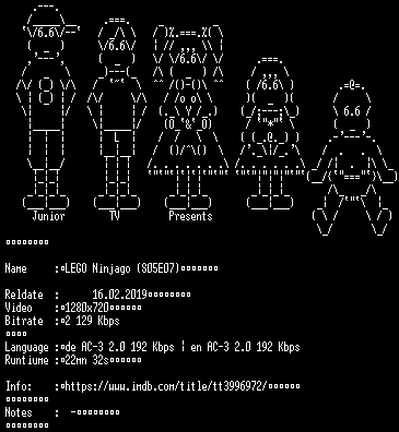 | FiLENAME: | LEGO.Ninjago.S05E07.German.DL.720p.WEBHD.x264-JuniorTV.mkv |
