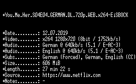 | FiLENAME: | You.Me.Her.S04E04.GERMAN.DL.720p.WEB.x264-EiSBOCK.mkv |
