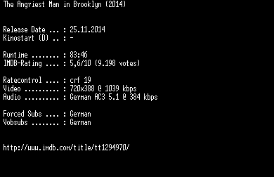 | FiLENAME: | The.Angriest.Man.in.Brooklyn.German.2014.BDRiP.x264-EXQUiSiTE.mkv |