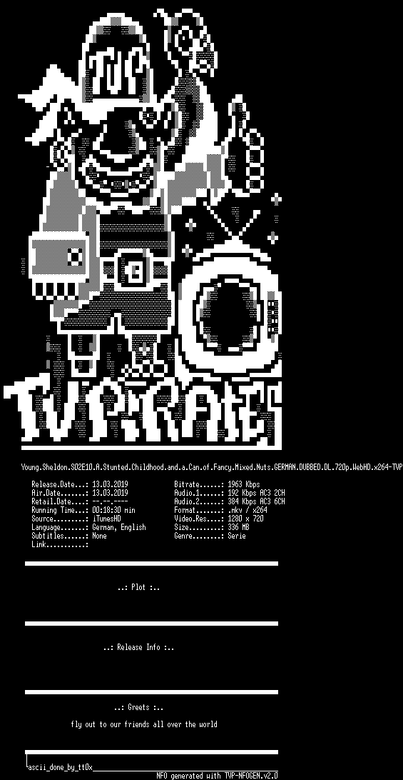 | FiLENAME: | Young.Sheldon.S02E10.A.Stunted.Childhood.and.a.Can.of.Fancy.Mixed.Nuts.GERMAN.DUBBED.DL.720p.WebHD.x264-TVP.mkv |