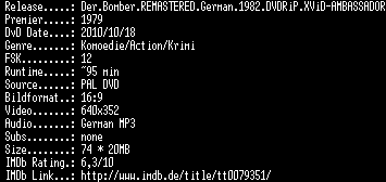 | FiLENAME: | Der.Bomber.REMASTERED.German.1982.DVDRiP.XViD-AMBASSADOR.avi |