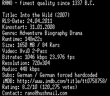 | FiLENAME: | Into.The.Wild.German.2007.AC3.BDRiP.XviD.iNTERNAL-RANO.avi |