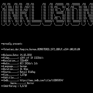 | FiLENAME: | Totentanz.der.Vampire.German.REMASTERED.1971.BDRiP.x264-iNKLUSiON.mkv |