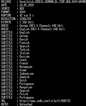 | FiLENAME: | Good.Witch.S05E11.GERMAN.DL.720P.WEB.X264-WAYNE.mkv |