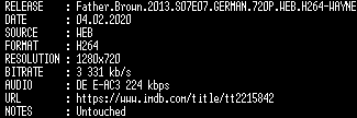 | FiLENAME: | Father.Brown.2013.S07E07.GERMAN.720P.WEB.H264-WAYNE.mkv |