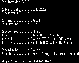 | FiLENAME: | The.Intruder.2019.German.DTS.DL.1080p.BluRay.x264-COiNCiDENCE.mkv |