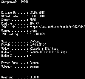 | FiLENAME: | Steppenwolf.German.REMASTERED.1974.OAR.AC3.BDRip.x264-SPiCY.mkv |