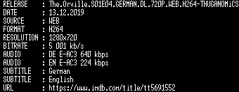 | FiLENAME: | The.Orville.S01E04.GERMAN.DL.720P.WEB.H264-THUGANOMiCS.mkv |