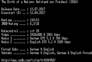 | FiLENAME: | The.Birth.of.a.Nation.Aufstand.zur.Freiheit.2016.German.DTS.DL.1080p.BluRay.x264-COiNCiDENCE.mkv |