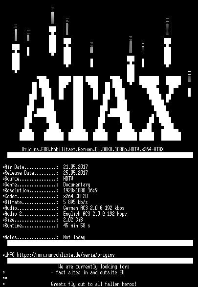 | FiLENAME: | Origins.E08.Mobilitaet.German.DL.DOKU.1080p.HDTV.x264-ATAX.mkv |